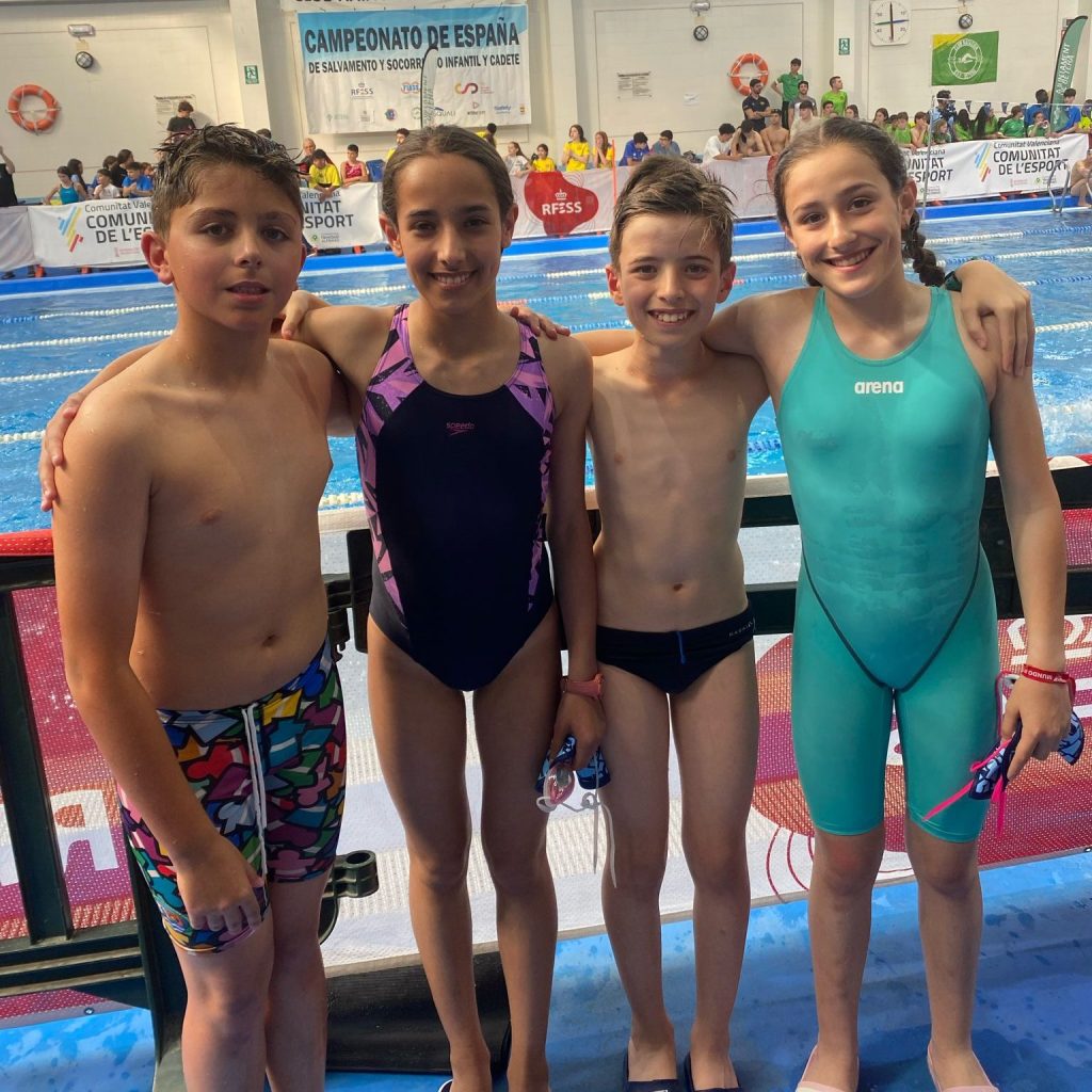 - Relevo 4x25m remolque de maniquí Infantil Masculino 2’03″92 (récord anterior 2’05″81)